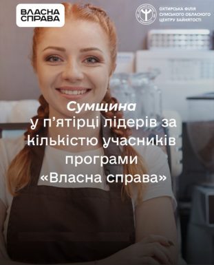 Сумщина — у п’ятірці лідерів за кількістю учасників програми «Власна справа». За результатами 26-ї хвилі наша область стабільно утримує високі позиції серед регіонів України: Харківщина — 19%, Львівщина — 14%, Дніпропетровщина — 11%, Сумщина — 10%, м. Київ — 9%. Це ще раз підтверджує: навіть у прифронтовому регіоні є потужний підприємницький потенціал, нові ідеї та віра в майбутнє.